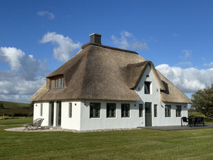 Das stilvolle Reetdachhaus Seegut mit dem modernen Holzanbau liegt im Landschaftsschutzgebiet direkt an der Nordsee, in dem für seinen Leuchtturm berühmten Ort Westerhever, nahe St. Peter-Ording mit seinen traumhaften Sandstränden. Nur ein paar Schritte über den Deich und das Meer liegt einem zu Füßen.